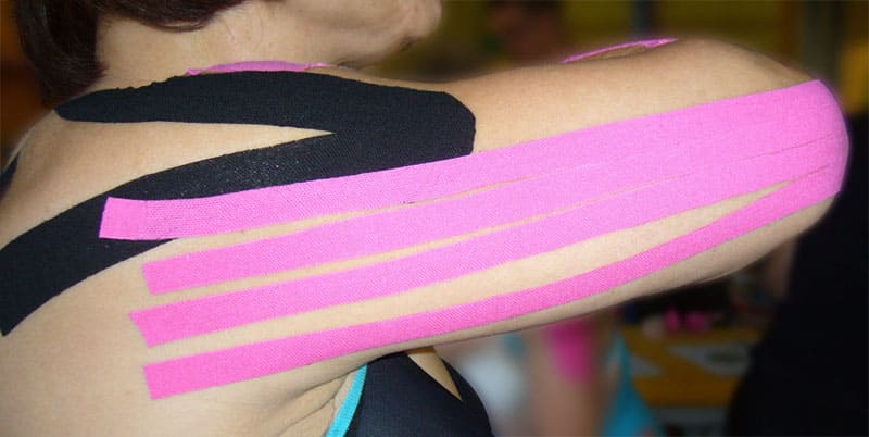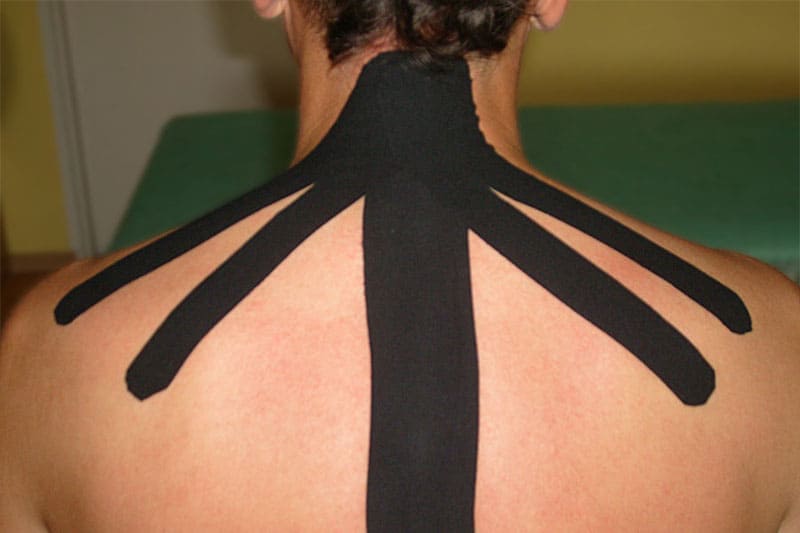 - W terapii kinesiology taping wykorzystuje się plaster (tape) o parametrach zbliżonych do właściwości skóry ludzkiej. Jest on wykonany z bawełny pokrytej akrylem medycznym, wodoodporny, przepuszczający powietrze i pozwala na prawidłową wymianę cieplną.